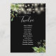 These elegant botanical greenery floral string lights wedding table numbers can be personalised with your guests' seating plan set in chic typography on a black background. The cards are printed on the front and back (double-sided). Designed by Thisisnotme©