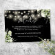 This elegant black and white greenery floral string lights wedding details enclosure card can be personalised with your information in chic typography. Designed by Thisisnotme©