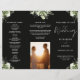 This elegant wedding trifold program features floral greenery on a black background. Designed by Thisisnotme©
