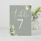 Elegant sage green wedding table numbers featuring floral greenery. The cards are printed on both sides (double-sided). Designed by Thisisnotme©