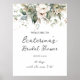 Elegant bridal shower welcome sign with dusty pink watercolor flowers and greenery