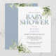 Greenery Foliage Boy Dusty Blue Letter Baby Shower Invitation