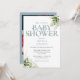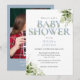 Greenery Foliage Boy Dusty Blue Photo Baby Shower Invitation
