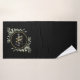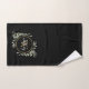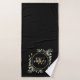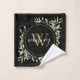 Greenery Foliage Gold Monogram Chic Script Black Bath Towel Set