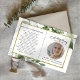 Customise this modern, elegant funeral program with your own photo and text to create a special tribute to your Beloved. An 'In Loving Memory' program featuring a Greenery Foliage and Eucalyptus leaves with gold accent memorial program. On the front cover is a photo of your loved one, their name, dates, the memorial venue, and the date of the event. On the inside is an obituary and order of service, and on the back is a thank you note and the venue of the