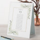 This elegant greenery eucalyptus leaves table seating chart features delicate watercolour leaves with your guests' seating plan framed by a gold border. Designed by Thisisnotme©