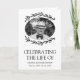 White folded funeral program with elegant black fonts. On the cover, a photo of your loved one along with their name and years living. Inside you can write the obituary and program. On the back you can add acknowledgements. Folded celebration of life program personalised with an oval photo of your loved one framed by greenery.