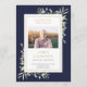 A navy blue botanical watercolor greenery personalised order of service funeral memorial program. Designed by Thisisnotme©