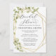 Greenery geometric bridal shower invitations - super cute and modern. These invitations feature watercolor painted green leaves with gold accents. Perfect for an elegant bridal shower.