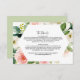 This greenery geometric wedding details insert card is perfect for a rustic wedding. The design features lovely white, pink, and blush hand-painted roses and a touch of greenery, adorning gold geometric frames, inspiring artistic beauty.
