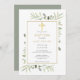 Featuring delicate watercolor leaves and an elegant gold crucifix, this chic gender neutral baptism or christening invitation can be personalised with your special information, with a silver sage background on the reverse. Designed by Thisisnotme©