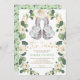 Greenery Gold Elephant Twins Neutral Baby Shower Invitation