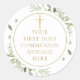 Greenery Gold First Holy Communion Message Classic Round Sticker
