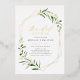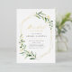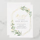 Modern greenery bridal shower invitation featured rustic watercolor botanical foliage greenery and real gold foil leaves and geometric frame, simple and elegant.