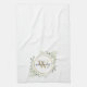 Greenery Gold Monogram Chic Script Tea Towel
