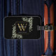 Elegant watercolor greenery leaves monogram name luggage tag featuring a gold monogram initial on a chic black background. Designed by Thisisnotme©