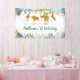 This cute birthday banner features faux gold foil safari animals with watercolor greenery.