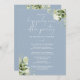 Featuring delicate floral greenery, this chic dusty blue Happily Ever After party wedding invitation can be personalized with your special event information, and wedding vows on the reverse, set in modern, elegant typography. Perfect for any marriage celebrations, including vow renewals, 1st-anniversary receptions, post-elopement parties or had to have a micro-downsized wedding and are now ready to party again. Designed by Thisisnotme©