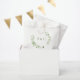 Customise these favour bags with the names of the bride and groom, their monogram, a special message, and the wedding date. The crest monogram features my watercolor green leaves wreath, adding a touch of natural beauty and sophistication to each box.