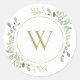 Greenery Leaves Gold Monogram Initial Classic Round Sticker