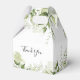 Elegant wedding favour box featuring greenery leaves, chic signature script names and special date. You can personalise with your own thank you message on the reverse. A perfect way to say thank you to your guests! Designed by Thisisnotme©