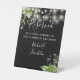 Greenery Lights Black Memory Reserved Wedding Pedestal Sign