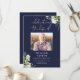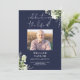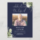 An elegant navy blue, botanical watercolor greenery order of service funeral memorial program. Designed by Thisisnotme©