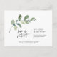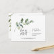 Greenery Minimal, Love is Patient, Wedding Invitation/ party celebration Postponed or rescheduled Postcard, in black font.