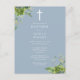 Greenery Monogram Baptism Dusty Blue Invitation Postcard