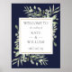 Featuring delicate watercolor leaves on a navy blue background, this chic welcome sign can be personalised with your special wedding day information. Designed by Thisisnotme©