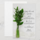 Customize the natural Greenery on White Wedding Menu with the details of the meal that you will serve at your pretty garden party bridal shower luncheon, post wedding brunch or marriage reception dinner by adding the salad or first course, entree or second course and dessert or third course. Personalize it with the names of the bride and groom, event venue and date. This elegant custom wedding menu features a nature photograph of a vintage glass milk bottle filled with green plant foliage and leaves with white silk.