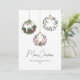 This beautiful holiday card features 3 botanical greenery ornaments. Elegant script text is easy to customise by clicking "Personalise".