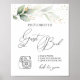 Photo Guestbook Wedding Sign Poster with green and gold foliage in watercolor style. On the top - golden and greenish effect confetti.
