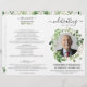 This folded program features an elegant greenery wreath and eucalyptus botanical leaves. You can personalise with a photo of your loved one and program information regarding the funeral/memorial service. You can customise the program to any way you would like to remember and honour the memory of your loved one.