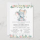 Greenery Pink Floral Elephant Baptism Christening Invitation