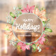 Watercolor wreath of poinsettias, holly, berries, eucalyptus and pine greenery, along with your business name and Happy Holidays. Choose ANY SIZE window cling and **front or back cling for your window. (Size shown is 24" x 24", but can be made larger or smaller.)