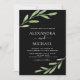 Rustic Greenery Branch and Leaves Watercolor Spring Wedding Invitations with Black Background - includes beautiful and elegant script typography with modern botanical leaf and tree branch for the special Wedding day celebration.
