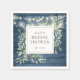 Featuring pretty string lights and delicate watercolor greenery leaves on a rustic blue wood background, these chic botanical paper napkins can be personalised with special event details. Designed by Thisisnotme©