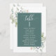 Help your guests find their table with this elegant greenery seating plan cards with guests names. Frame with guest names in Eucalyptus green and delicate greenery watercolor details. Double sided cards so guests can look from both, front or back for their names. Clear space all around giving you the liberty to use clips or punch hole for hanging displays, or use table holder/frame. Modern hand written calligraphy details. Greenery in a beautiful blend of green, blue, beige tan, and terracotta hues. Also available with frame in white, in mist blue and in beige tan. Have all table numbers in same colour or mix colours according to your event's colour theme. Part of our "Elegant Greenery Eucalyptus Wedding and Events" collection with a variety of coordinating products available.