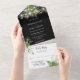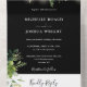 This all-in-one black and white wedding invitation features botanical greenery and pretty string lights. The invitation includes a perforated RSVP card that can be individually addressed or left blank so you can handwrite your guest's address details. Designed by Thisisnotme©