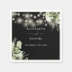 Elegant floral greenery string lights black and white wedding napkins personalised with your names and special wedding date. Designed by Thisisnotme©