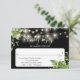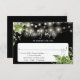 An elegant eucalyptus greenery string lights black and white RSVP card with your details set in chic typography. Designed by Thisisnotme©