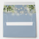 Featuring pretty floral greenery and pretty string lights on the inside of the envelope, this elegant return address envelope can be personalised with your names and address details in chic white lettering on a dusty blue background. Designed by Thisisnotme©