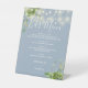 Greenery String Lights Dusty Blue Wedding Bar Menu Pedestal Sign