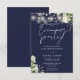 This elegant botanical greenery, floral string lights, navy blue wedding, evening party invitation can be personalized with your information in chic typography. Designed by Thisisnotme©