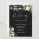 This elegant black and white greenery floral string lights wedding invitation can be personalised with your information in chic typography with your special photo, wedding website details and your QR code on the reverse. Designed by Thisisnotme©