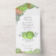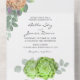 Rustic greenery succulent all in one wedding invitation with an easy to tear off perforated RSVP postcard.