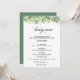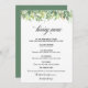 This greenery summer destination kissing menu is perfect for a simple wedding reception. Green blush hand-drawn leaves, foliage adorn idyllic geometric frames, oozing style and class to embellish your occasion cards.