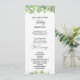 This greenery summer destination wedding program is perfect for a simple wedding. Green blush hand-drawn leaves, foliage adorn idyllic geometric frames, oozing style and class to embellish your occasion cards.