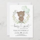 Greenery Teddy Bear with Balloons Boy 1st Birthday Invitation